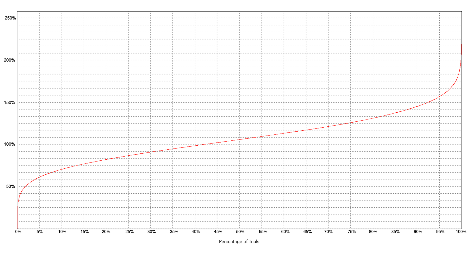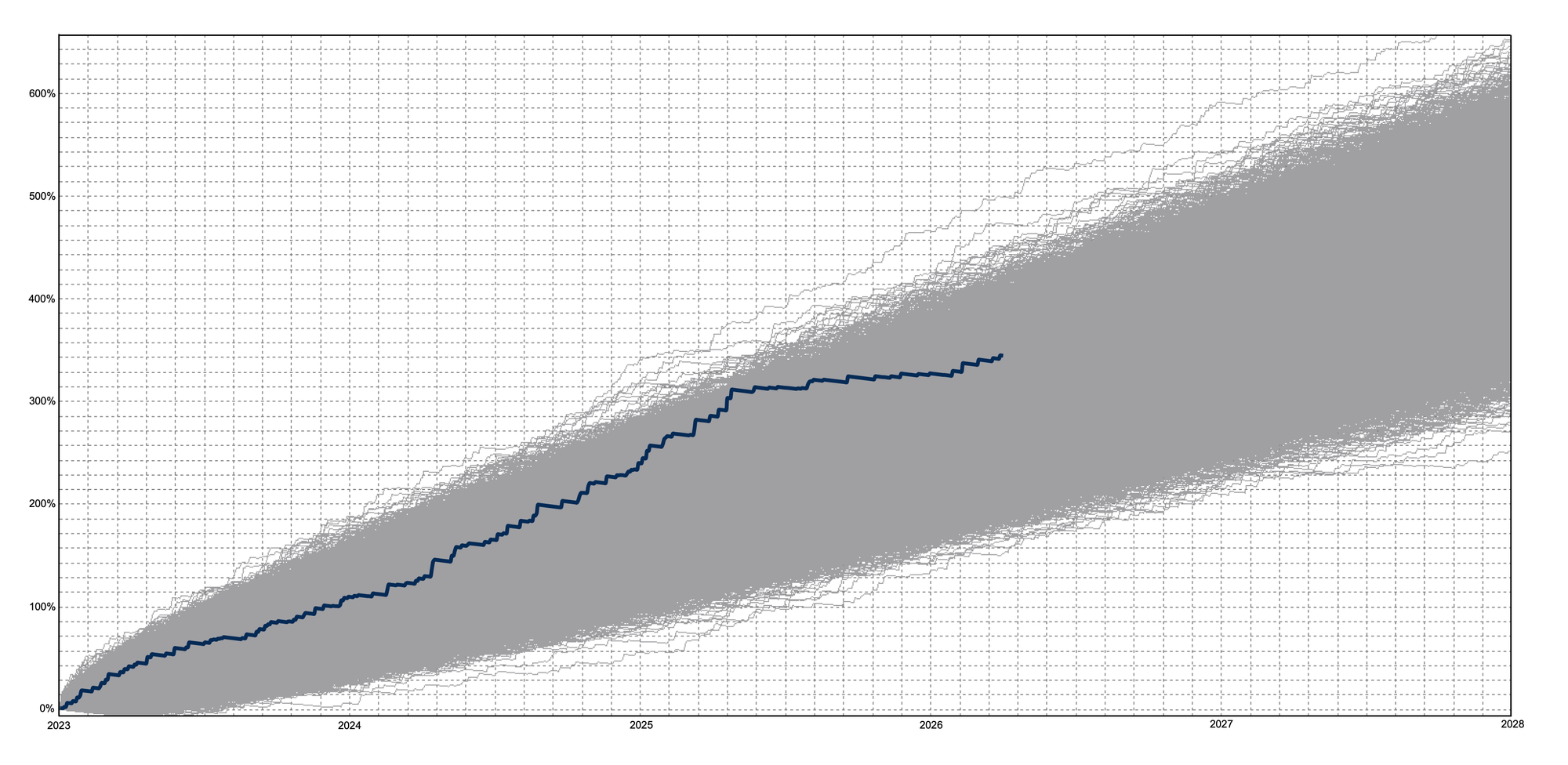 Modeled maximum drawdown reflects the 99th percentile across 100,000 randomized forward simulations.