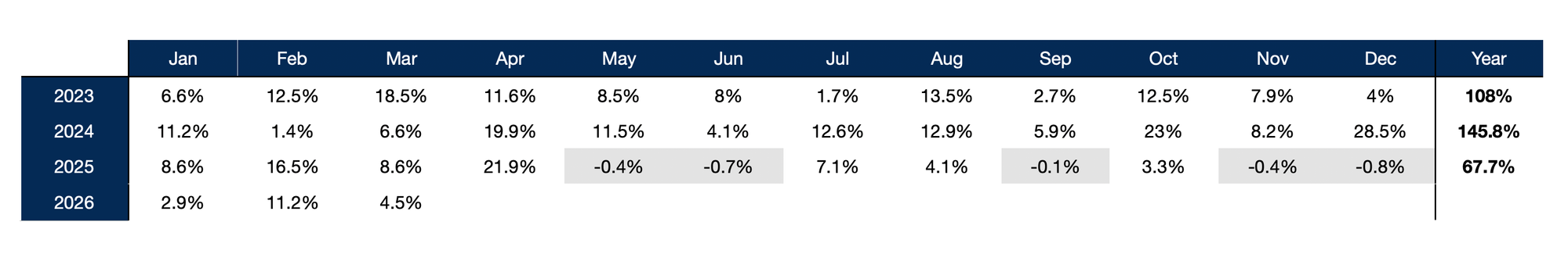 Systematic outputs are transmitted through the Operator’s NinjaTrader platform for automated execution at a compatible futures brokerage.